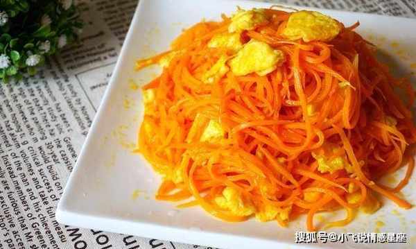 材料胡萝卜约2根。300克,鸡蛋一般1个鸡蛋人,油适量,盐适量,葱花少许。