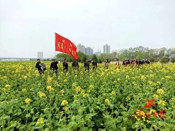 “一片片梯田一层层绿,一阵阵歌声随风传,谁不说俺家乡好……”在油菜花海,凤凰广场歌友团,拉起了手风琴、吹起了笛子,一起高歌《谁不说俺家乡好》,表达对咸阳的热爱和美好生活的祝福。