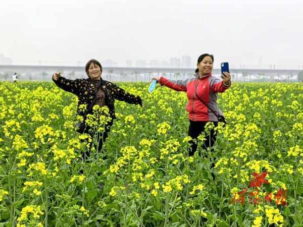 “在油菜花丛中穿梭,闻着夹杂着泥土芬芳的阵阵花香,踏着松软的土地,好像身处仙境一般。金黄的花丛让我们流连忘返,置身其中,一切烦恼会一扫而空。”市民高静、孙燕子说。