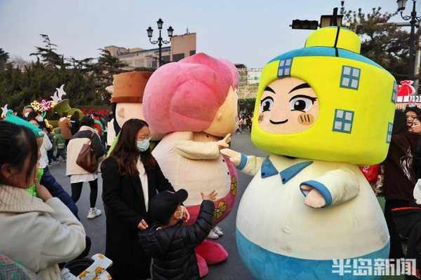 3月18日,市南区中山路上,市民和游客们与众多可爱的IP形象一起拍照互动,场面热闹欢乐。上街里·逛春天旅游艺术季期间,IP艺术巡游活动每晚在太平路、中山路、海誓山盟广场、肥城支路、四方路、黄岛路等地方与大家见面,“萌萌哒”的形象将为市民和游客带来欢乐。