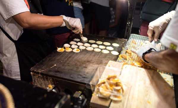 走了许久看到许多人在一家卖烤香蕉摊位前面排队,香蕉我吃过很多但烤的不仅没吃过而且也是第一次听说,好奇心顿起,于是大家决定集体品尝一下,和其他摊位不一样的是这个小吃竟然有桌椅,正好让我们走了半天酸痛的腿脚也休息一下。也许有人会问吃的气质如何,只能告诉你因为每个人口味不同,我认为还可以吧。