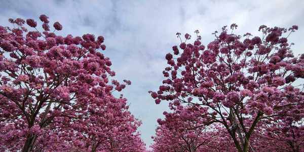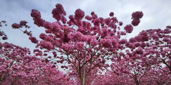 我一直以为这种树也就开黄色的花,没想到还有紫色的,但开紫色花的树叫紫花风铃木。这两种树是不同的树木,不仅花朵颜色不同,花朵形状不同,花期也不同。