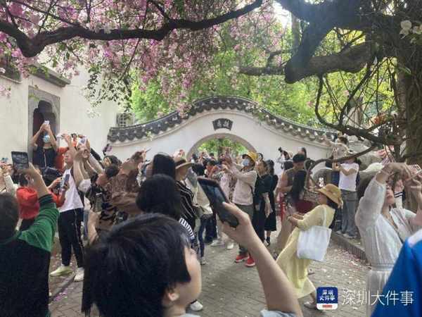 南都讯 记者张小玲 古有烟花三月下扬州,今有三月赏花来鹏城。3月春日萌发,万物生长,深圳已是花满鹏城,花香四溢。春日里的园博园汇芳园极为热闹,挤满了慕名而来的赏花市民,还有那花开热闹如瀑如流的簕杜鹃,真是春色满园关不住,千朵万朵压枝低,成为深圳网红打卡点。