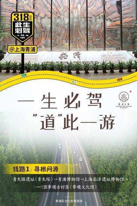 上海最美国道,沪青平公路——318国道青浦段,全长47.5公里。上海崧泽遗址博物馆位于318国道沿线(沪青平公路3993号),“318青浦旅游日”当天,青浦首个“此生必驾318”打卡站牌将在此正式揭牌。