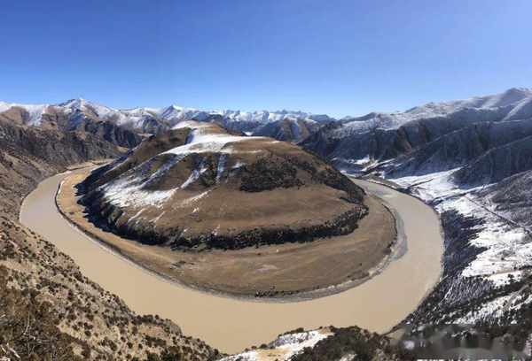 阳春三月,驱车来到玉树藏族自治州治多县叶青村,顺着河道继续向大山深处驶去,不一会,“万里长江第一湾”便映入眼帘。