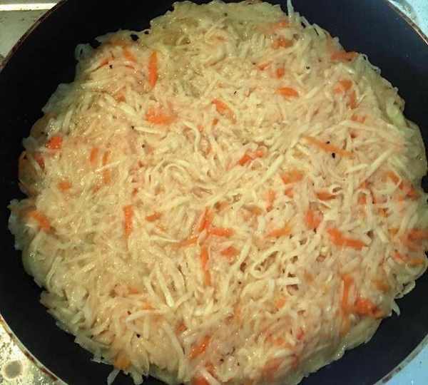 之后我们准备一个煎锅,在锅里加入少许食用油,等油热了土豆丝就可以做成饼状了,然后放入锅中用小火煎至一边炸土豆丝土豆丝凝固后,翻过来,炸另一面至凝固。待土豆丝两面煎至金黄时,即可出锅。这么好吃的土豆饼就做好了,吃起来特别香。