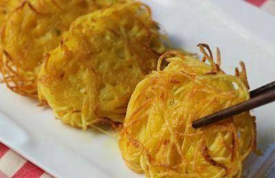 制作方法:首先我们准备一些土豆。我们准备的土豆量够我们一家人吃的。然后我们清洗土豆。清洗后,我们剥掉土豆的外皮,然后准备一个刨丝器。土豆是切丝的,土豆切丝后就不用洗了,因为之后我们还需要加点淀粉,所以土豆里面含有的电子也可以利用,没关系,所以就有了无需用水清洗。可以直接放在一个大盆里,然后加入适量的食用盐和辣粉,搅拌均匀。辣粉中还加入了辣椒粉、花椒粉、孜然粉、椒盐粉等调味品,使土豆饼更加美味。