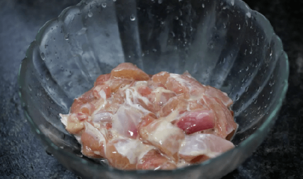 鸡肉中放入盐、白胡椒、料酒、蛋清抓匀