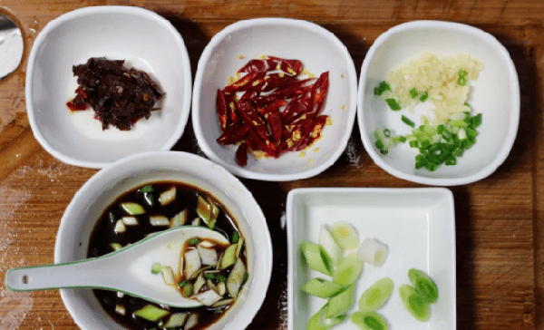 香葱和蒜切末,郫县辣椒酱剁细碎