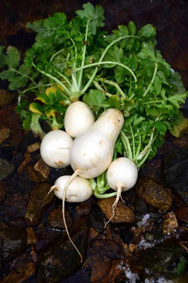 100、萝卜贮藏三法:土坑贮藏法:将 新鲜的萝卜削去项,去毛根,严格剔除带有虫伤,机械伤,裂口和过小的萝卜。挖一个l米深,1米见方的土坑,路萝卜根朝上,顶朝下,斜靠坑壁,按顺序码紧。 码齐一层萝卜,撤上一层10厘米左右厚的净土,如此交替码放,共码四层。若坑土过于,可适当喷水湿润。最上一层码好后,要根据气候变化逐渐加厚土壤层,天 暖少覆土,来强寒流时多覆土,小寒前后覆土完毕,土厚共1米。质量好的萝卜,入坑前不受热,入坑后不受冻,能贮存到来年三月上旬。泥浆贮藏法把萝卜削顶,放到黄泥浆中滚一圈,使萝菠萝卜结一层泥壳,堆放到明凉的地方即可。如果在萝卜堆外再培一层湿土,效果更好。水缸外贮藏法。在室内放一水缸,里面装满水,把萝卜堆放在缸的周围,上面再培15厘米厚的湿土即可。