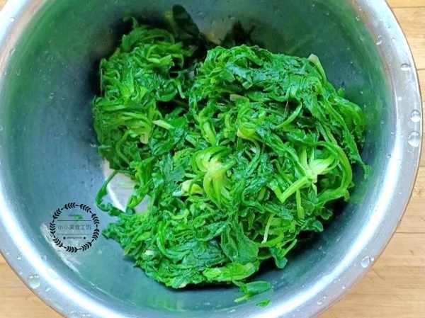 1、将芥菜清洗干净后放入热水中焯烫变软,然后控干水分切碎备用。