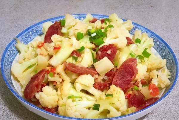 花椰菜炒腊肠是一道美味可口的下饭菜,下面是一个简单的食谱: