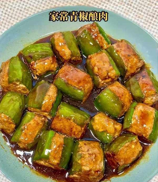 青椒酿肉是一道美味可口的家常菜,下面是一个简单的食谱: