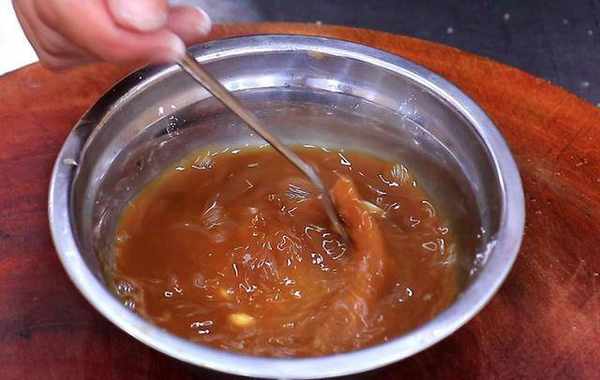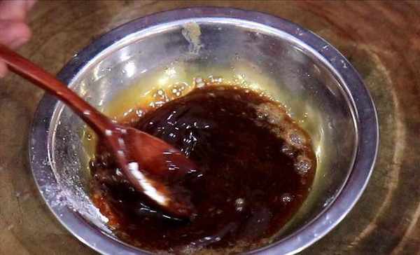 3.碗中加入食盐2克,鸡精2克,白糖15克,生抽10克,香醋10克,加入少许清水稀释一下,再加入一勺淀粉搅拌均匀。