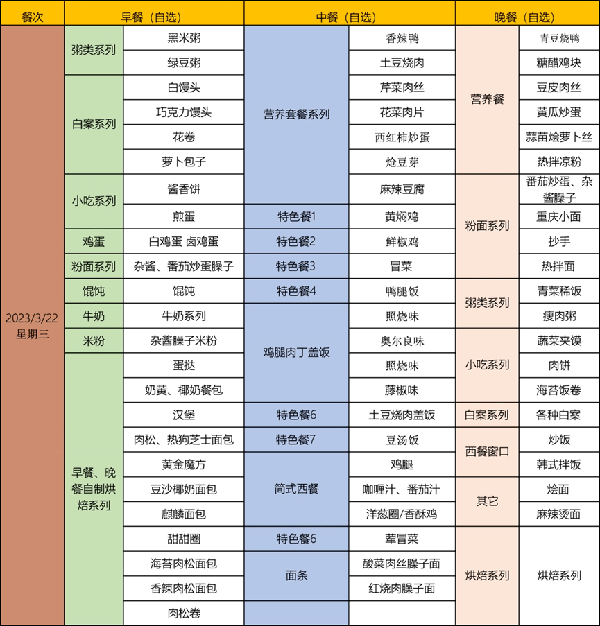 三月里的校园,春雨润无声,茁壮成长的同学们,此时急需丰富的美食补充营养。人间烟火气,最抚学子心。真正的美食没有标准答案,可以是高大上的食物,也可以是普通的米饭。同学们,让我们青春作伴,一起长的白白胖胖。在最美好的时光里,食堂美食与你相伴!