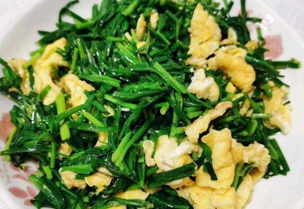 3,倒入切好的韭菜,翻炒几下,炒至断生后,加盐调味就可以出锅了。