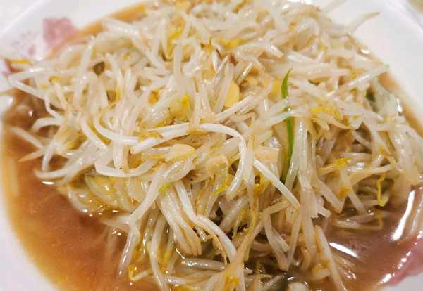 3,绿豆芽炒至七八分熟的时候,加盐调味,出锅之前再淋一点锅边醋提香就可以装盘了。
