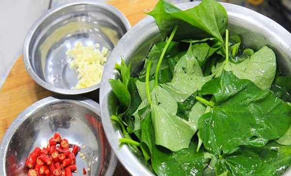 红薯叶享有“蔬菜皇后”的美称,含钙比菠菜、芹菜都高,尤其顶端的头茬嫩芽营养最高,是绿色食材的高钙代。