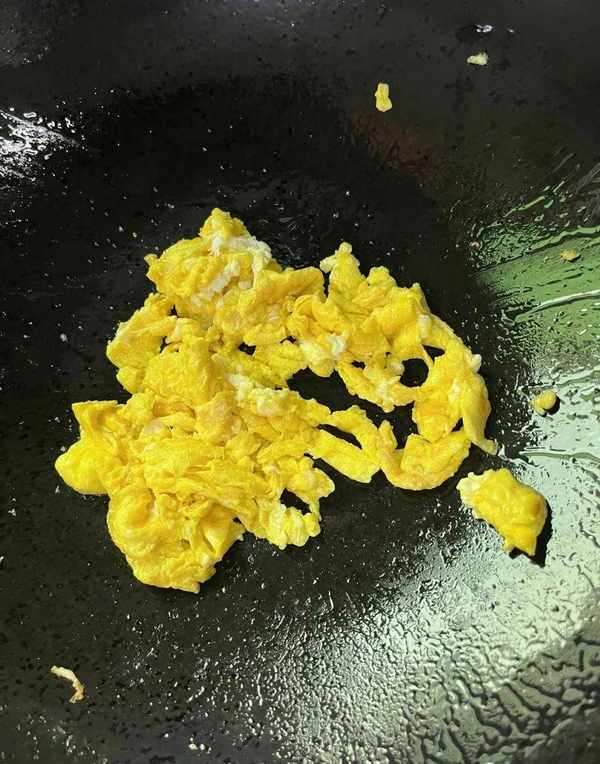 3.鸡蛋的面洗干净,鸡蛋洗干净了之后打入碗里面,用筷子给它搅拌均匀打散。锅里面倒入油,油热了之后,我们再把鸡蛋液打入锅里面,用小火炒一下。锅里面的鸡蛋炒成块,盛出放在碗中备用;