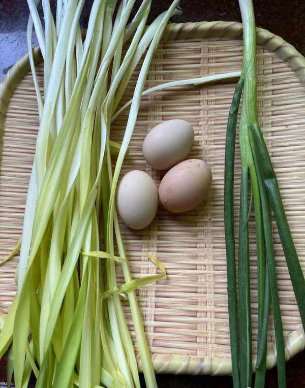 韭黄,小葱,鸡蛋,食盐,蚝油,食用油