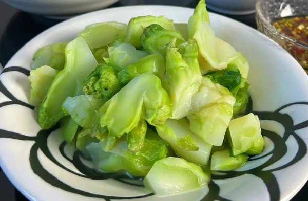 儿菜最经典的吃法就是用清水煮了,不能煮太烂,然后做好调料蘸着吃,美味青口又营养。