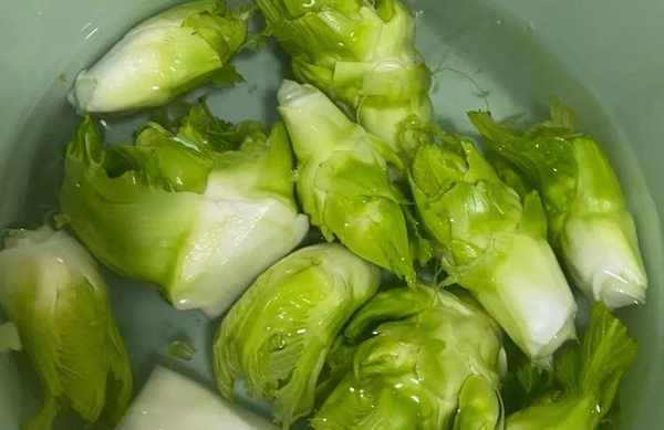 第一步,儿菜放入盆中洗干净,然后切成薄片,薄点好熟。
