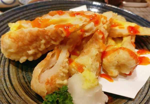 制作工艺:(1)首先来处理大虾,将大虾剥去虾头虾身,留下虾尾部位,随后剔除虾线,用刀在虾身轻轻剁上几刀,【目的是:便于入味,其次是炸制时不卷曲起来。】(2)将大虾用葱姜,干花椒,料酒,生抽少许抓拌均匀,腌制十分钟。(3)将鲜青花椒与小葱加在一起用刀剁成碎末,制成椒麻碎备用。(4)将大虾面涂抹上一点点椒麻碎,披上一条芝士,随后用培根卷起来,牙签固定或者线条固定住,包裹上一层鸡蛋糊,下入油锅中炸制金黄熟透,即可。(5)摆盘装饰,连同冰淇淋一同上桌。希望大家能够喜欢这个作品,我们下期再见。