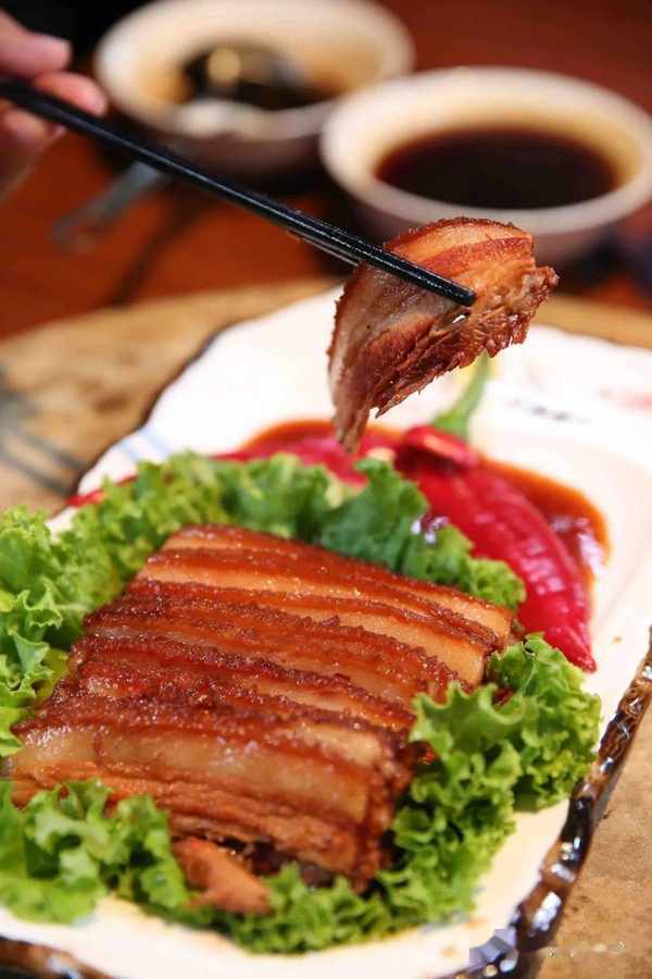 后来魏绍起对“万字扣肉”进行改良,切成长条片状,码在盘中,未吃之前为方形,食用时加一条入口,并且要软而不变形,香而不失肉的鲜美。