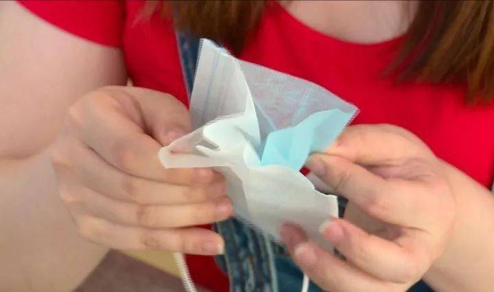 口罩是分层的,剪开以后里面出现了2个小袋子。