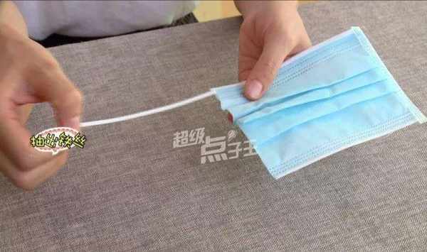 先用剪刀将口罩的一边裁掉,从里面抽出一根铁丝。