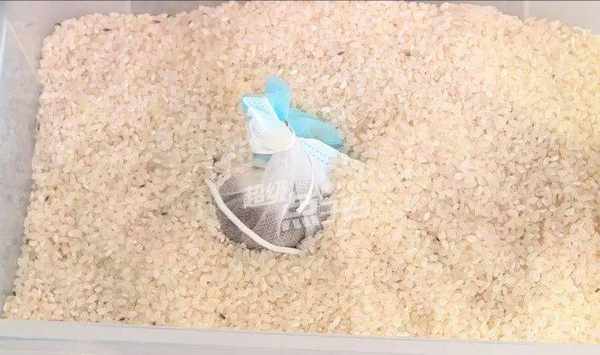 把做好的香囊放入长了虫的大米里,静置十多分钟。
