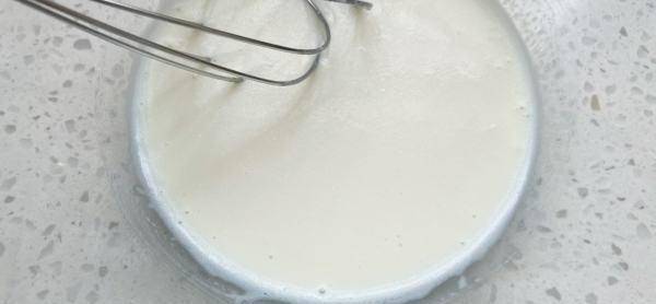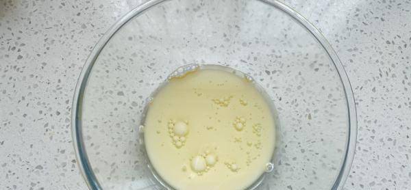 3、牛奶和玉米油要充分乳化。乳化液是浓稠酸奶的状态,没有油花,如图。