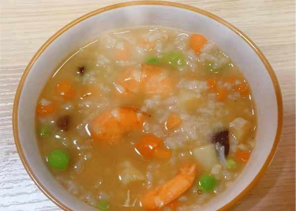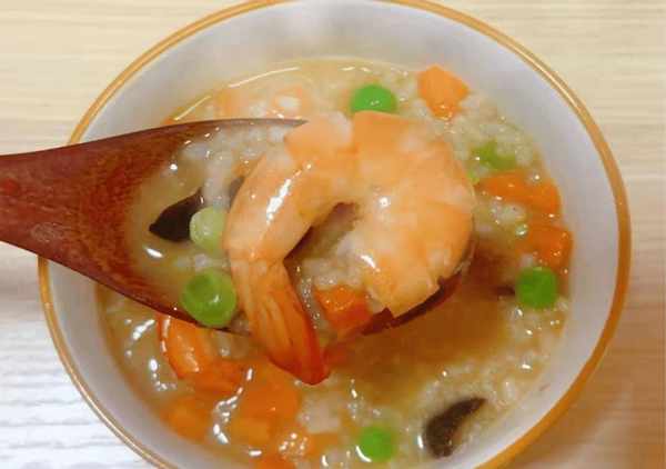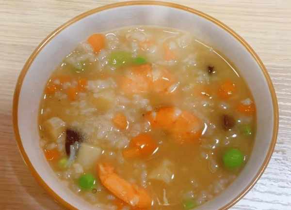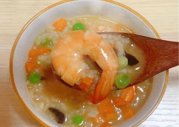 青豆、鲜虾和蘑菇粥是一顿丰盛的早餐。虽然成本有点高,但也是值得的。虾富含蛋白质和钙。用蘑菇和胡萝卜煮粥,用大米煮粥。它可以滋补身体,非常容易。一个完整的,非常完整的饮食,我的小女孩喜欢吃早餐。