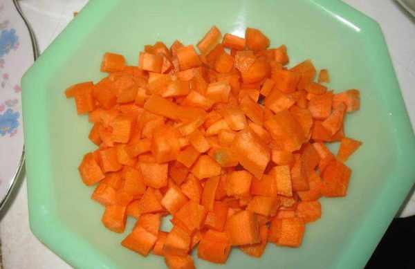 第五步:把米饭放进去用文火炖,加入胡萝卜丁和香菇丁,用大火炖5分钟左右,然后转中小火炖至香菇的香味熟透。