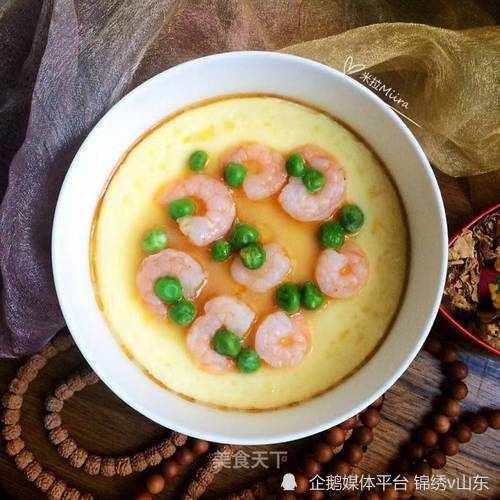 【食材】:鲜虾 适量、鸡蛋 3只、豌豆 少许、盐 1小勺、料酒 1勺、胡椒粉 1小勺、蒸鱼豉油 1勺、香油 少许