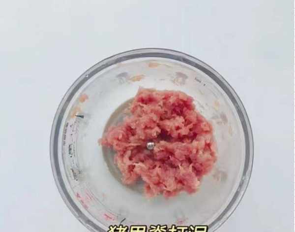 第二步:将猪肉丁放入料理机,按下绞肉机键,加入少许姜末,磨成肉馅,放入碗中,顺时针搅拌,使肉馅浓稠,加工好的丸子即成很好的Q弹。