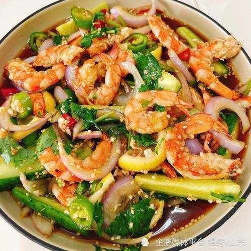 食材:大虾、柠檬、香菜、小米辣、蒜瓣、青线椒、洋葱、生姜、花椒、麻油、生抽、陈醋、蚝油、白砂糖、白芝麻