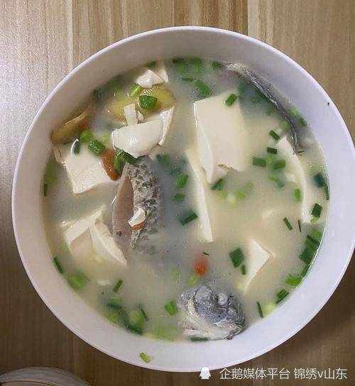 【材料】新鲜鲫鱼一条(1斤左右),豆腐一块,葱姜,盐