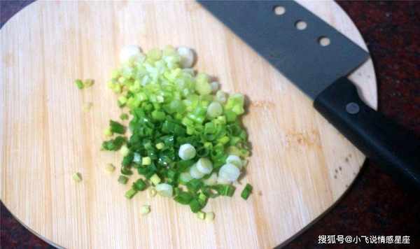2:将2个小葱洗净,然后去根切小块。不要忘记将它们全部倒入碗中。也可以在碗中加入一茶匙水,撒上盐和胡椒粉,加入2滴白醋。将蛋液搅拌均匀,准备好泡好的葵花籽和调好的蛋液,开始做这道葵花蛋汤。