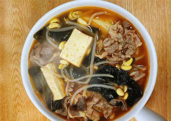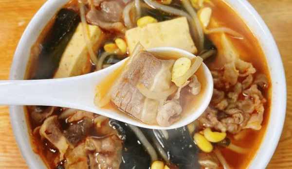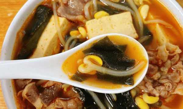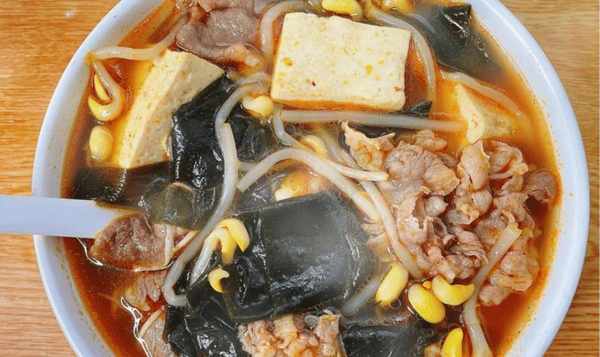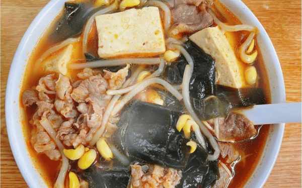 烹饪技巧:裙带菜肥牛肉豆芽豆腐汤是冬天的一道热菜。这道菜的食谱非常简单。肥牛一定要事先焯水,裙带菜用冷水泡软,豆芽、豆腐洗净备用。此汤先用葱、姜、蒜炒熟,然后拌入裙带菜,加水煮沸,加入豆腐块和豆芽熬成一道美味的汤,加入香料,最后加盐和胡椒粉。煮一会就出锅。
