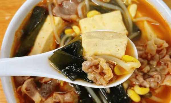 裙带菜是富含碘和钙的食材之一,营养十分全面。豆腐也是一种含有大量蛋白质和钙的优质食材。与牛肉卷、荤素食物、钙、铁同煮,滋补身体,增加营养,吸收快,有利于儿童生长发育。