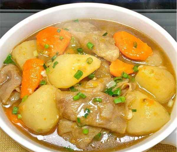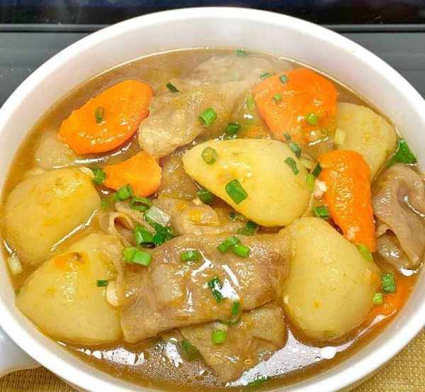 烹饪技巧:土豆和胡萝卜炖牛肉卷是我家晚餐的主食。味道独特,是一道非常浓郁的汤。方法很简单。肥牛卷一定要提前解冻,用冷水下锅煮去腥味,用冷水浸泡肥牛卷更入味,把土豆和胡萝卜切好放在热板上,底部涂上一层冷油。加热并添加。姜蒜炒香,加入土豆块和胡萝卜翻炒片刻,加入咖喱酱,加水烧开,大火稍微炖一下,最后加入它。肥牛卷,继续文火,上菜前调味,慢慢收干汤,撒上葱花,起锅。