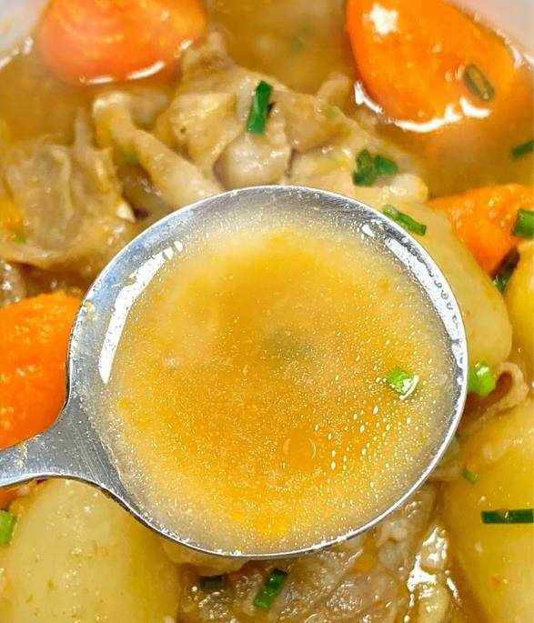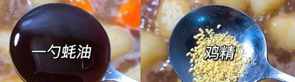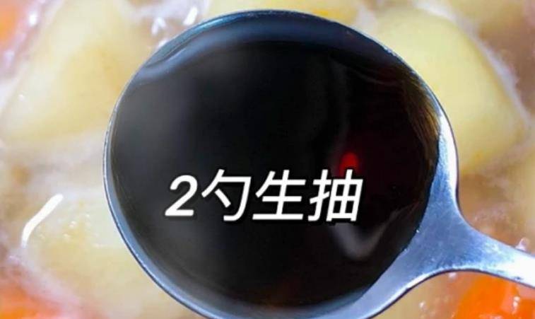 第四步:加入适量清水或温水,将汤烧开,加入两勺生抽、一勺蚝油和少许咖喱酱,让味道更加浓郁。