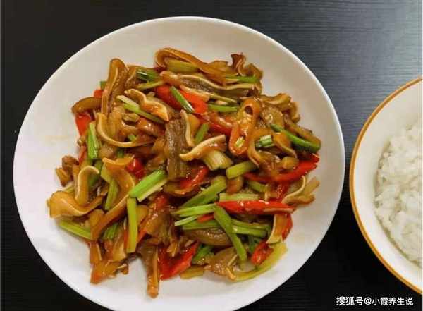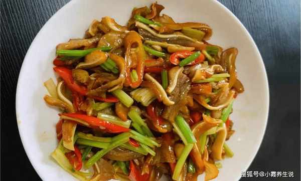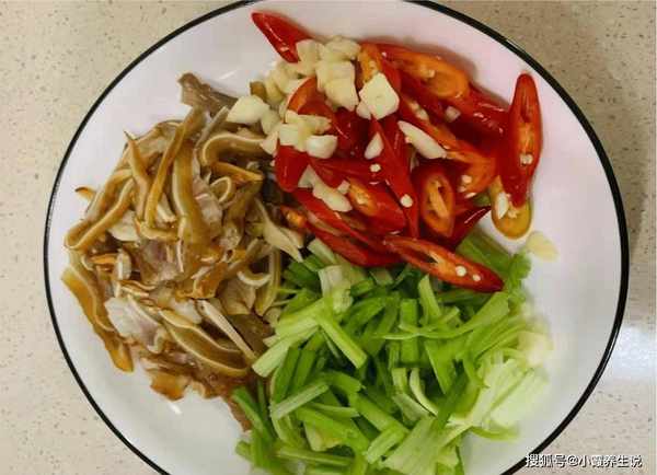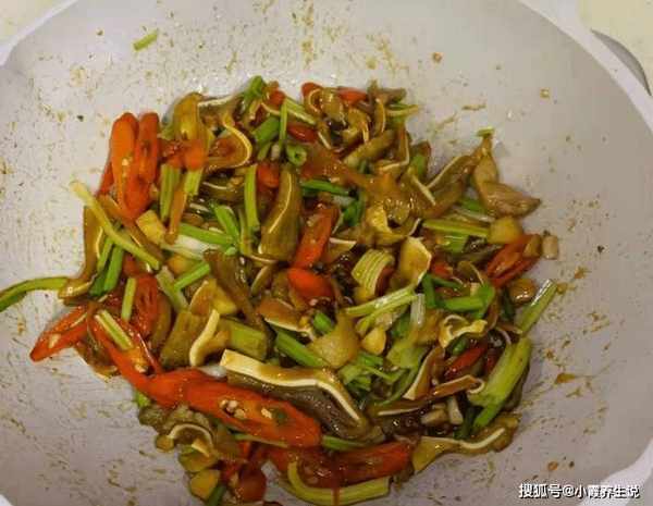 麻辣炒猪耳是一道很有意思的菜。猪耳朵需要仔细控制,用热油在热锅中煮熟。为蔬菜加些酱汁,快速搅拌调味,收汁出锅,装盘即可食用。