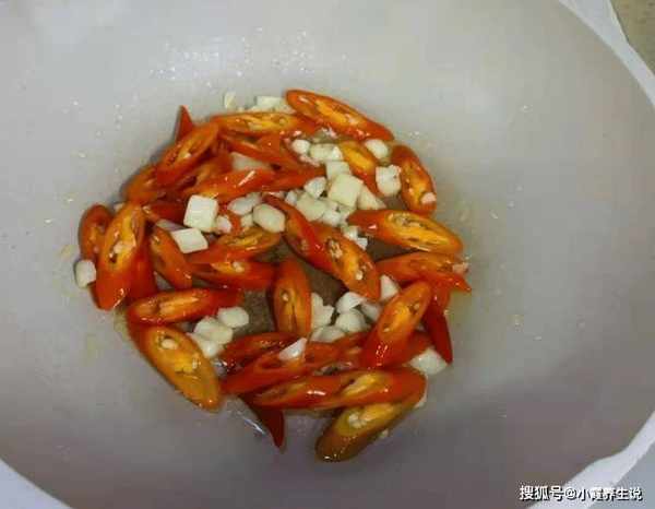 第四步:锅底加入适量的油,等油稍微热一点,加入葱、姜、蒜和小米椒炒出蒜香和辣味。