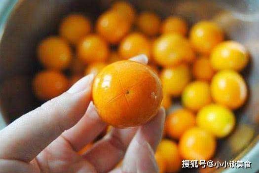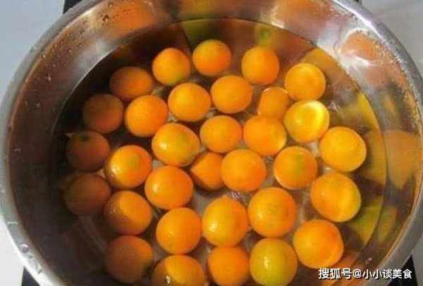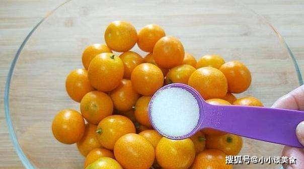 第一:把买回来的金橘切掉蒂,用清水洗净,放在一个大一点的容器里,加几勺盐,稍微泡一下,用布擦干净。金橘洗净,在金橘顶部切开,让金橘更香。