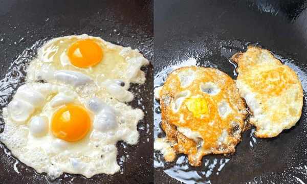 ②:锅底下油,油慢火烧一会,锅底撒一滴盐,打入两个鸡蛋,开火翻炒一会,待成形,转翻炒至焦黄,盛入空碗中。
