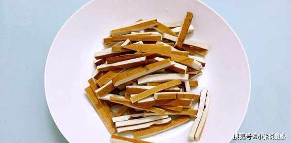 第五步:我们另起一锅,加少许油,放入香干面翻炒,让香干炒至微黄,倒入少许生抽和蚝油翻炒片刻。