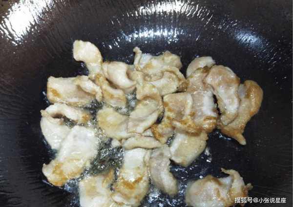 第四步:锅内放食用油,放入腌制好的肉片,将肉片全部炒熟,待变色后翻炒片刻。