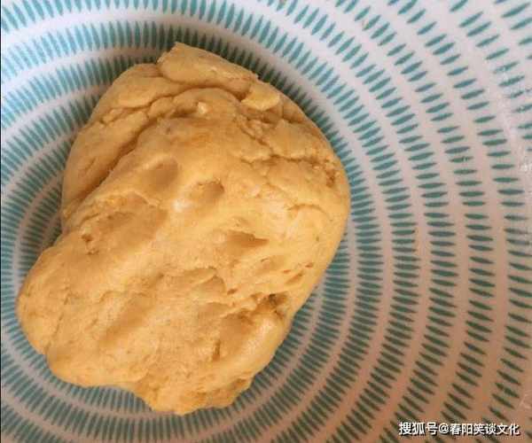 第二步:将红薯捣成红薯泥,加入适量糯米粉,加适量温水拌匀,加入适量白糖,将糯米粉揉成光滑的面团。